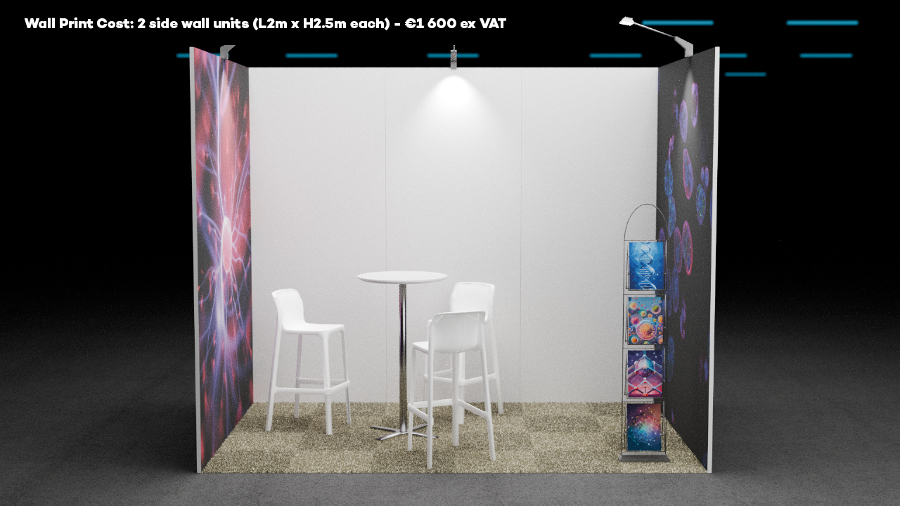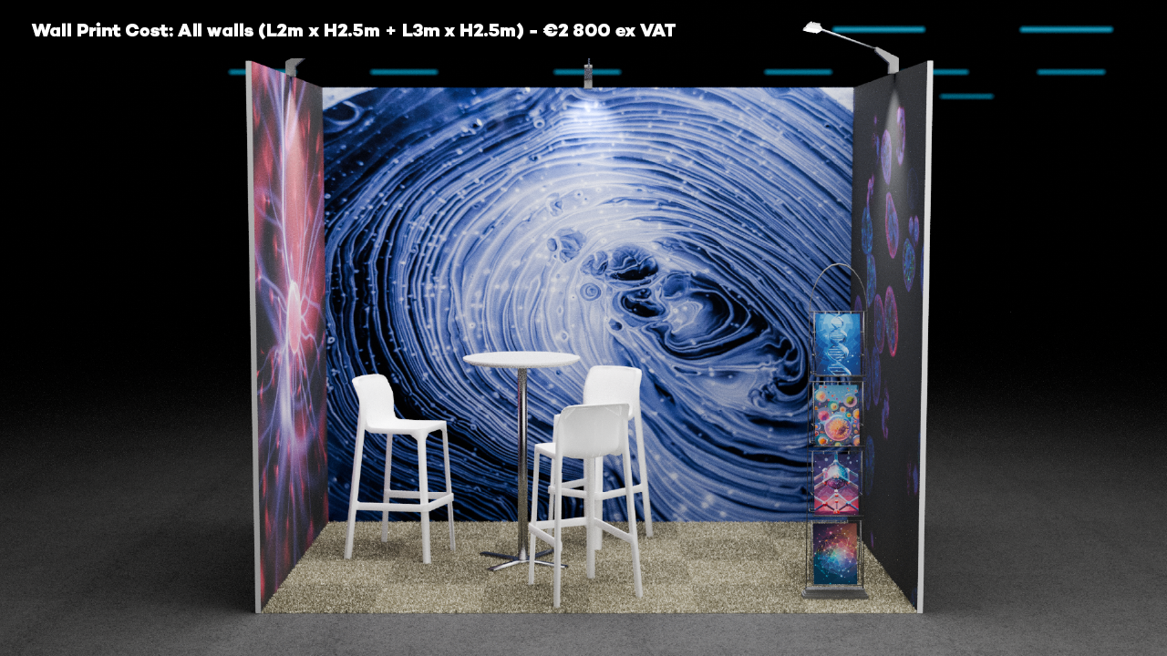 NLSDays exhibition packages are proposed in 6sqm and 9sqm options. For larger packages just multiply/combine packages or ask for a personalized estimate. The basic offering includes: