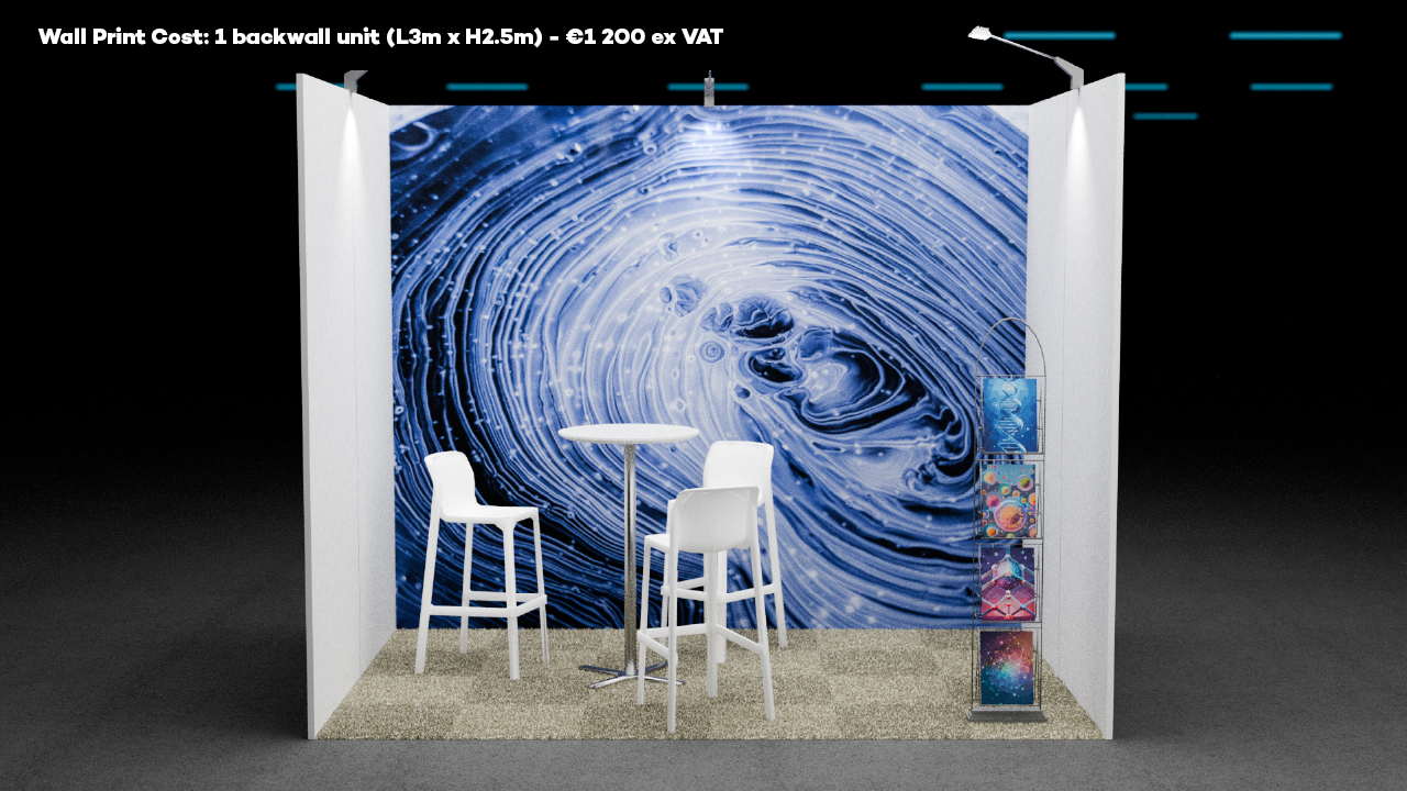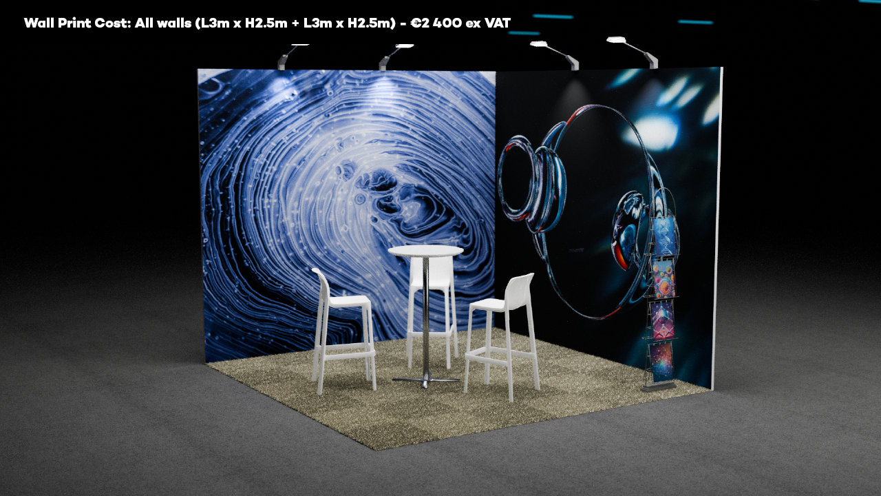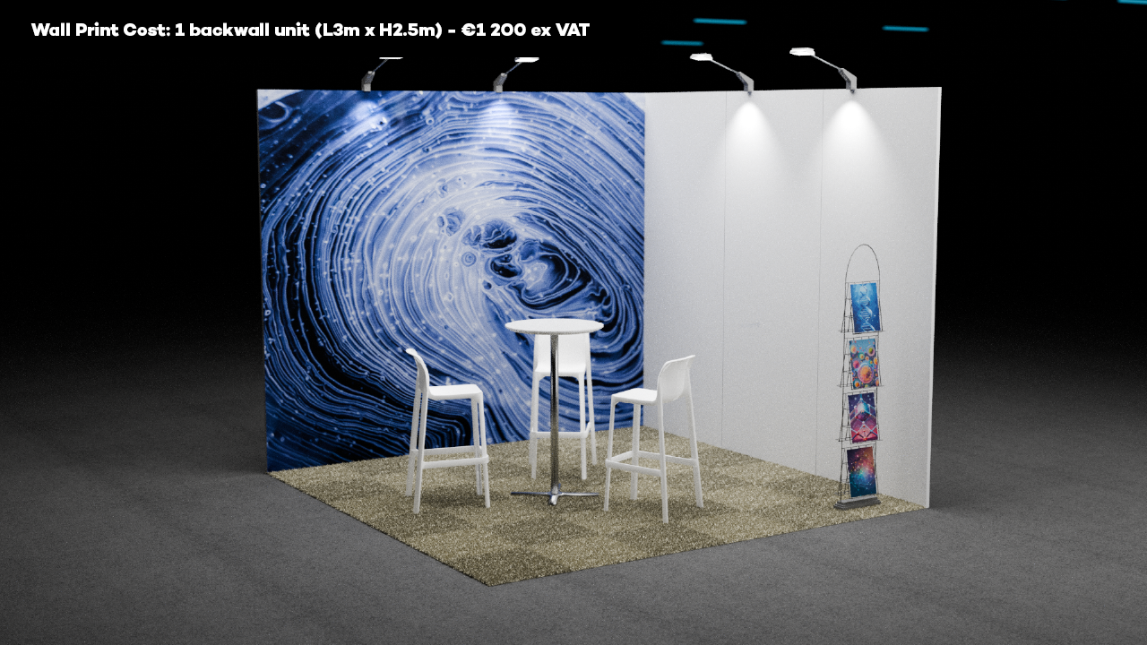 • 1 back wall unit (L3m x H2.5m)